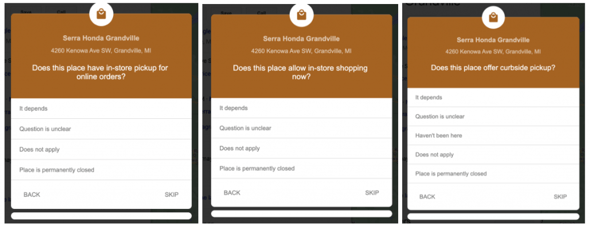 For dealers, GMB is asking consumers about how to shop at the dealership: